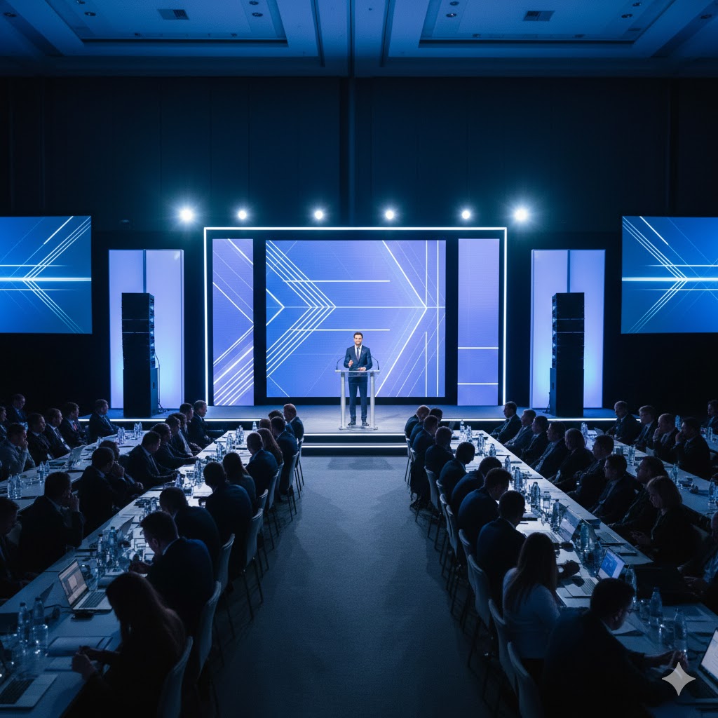 Yes, we bring premium sound systems, microphones, stage setups, and all technical equipment required.